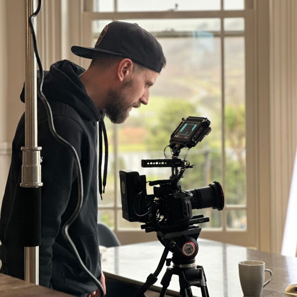 Filming was an adventure in itself. Our team, including director Tommy Rowe and our Marketing Manager Kate Chastey, with actor Tim Seyfert, chased weather systems across the Southwest coast, shooting on location in Devon, Cornwall and Dorset. Storm Eowyn hit in January 2025, offering the perfect conditions to capture the rawness we needed.